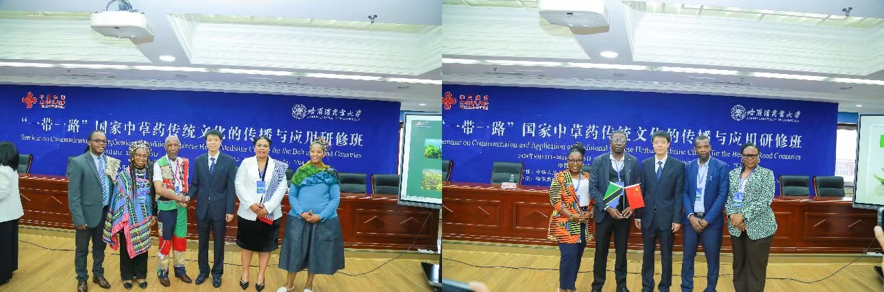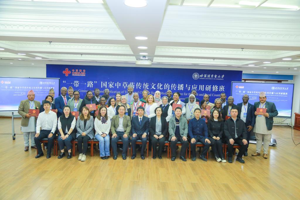 9月25日上午,由中华人民共和国商务部主办、哈尔滨商业大学承办的“一带一路”国家中草药传统文化的传播与应用研修班结业典礼在哈尔滨商业大学举行。哈尔滨商业大学药学院党委书记张铁锋、药学院院长李文兰、药物工程技术研究中心副主任高世勇、国际交流合作处援外项目主管杨蕾、药物工程技术研究中心和药学院教师代表,以及来自埃及、保加利亚、尼泊尔、坦桑尼亚、南非、津巴布韦、尼日利亚7个国家的30名学员参加典礼,张铁锋主持研修班结业典礼仪式。