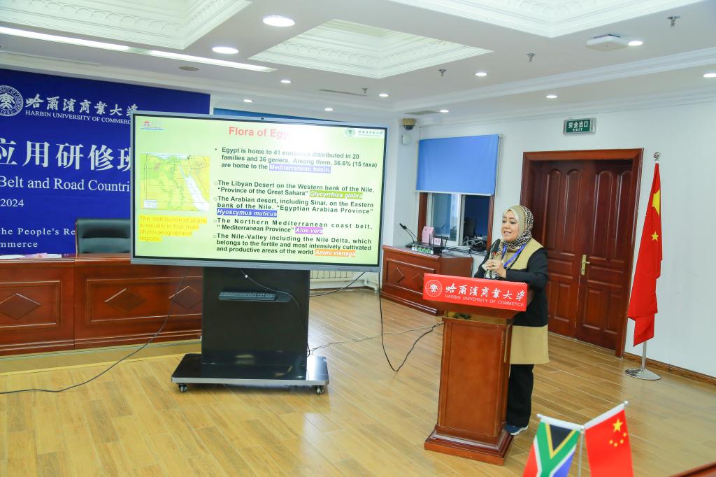 来自埃及中国大学的学员Mouchira Choukry教授代表学员进行了发言。她介绍了埃及中草药研究与应用的现状,通过研修班的学习收获了宝贵的知识和技能,更让他们深刻感受到了中国中草药传统文化和中国人民的友好与热情。这不仅为推动中国中草药传统文化走向世界、服务人类健康奠定了坚实基础,同时也为加深了中外文化交流提供了契机。她代表所有学员向此次研修班的主办单位、承办单位以及所有工作人员的辛苦付出表示衷心的感谢,回国后将为传播中草药文化贡献力量。
