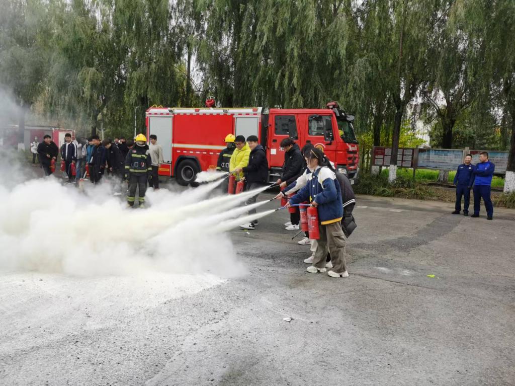 随着警报声的响起,老师和宿管人员迅速组织学生进行疏散。学生们按照预先设定的疏散路线,有序、快速地撤离到安全地带。松北大道消防救援站专业人员,对参演学生讲解了灭火器的使用方法及注意事项,并现场组织学生进行了灭火器扑灭初期火灾实际操作灭火演练。