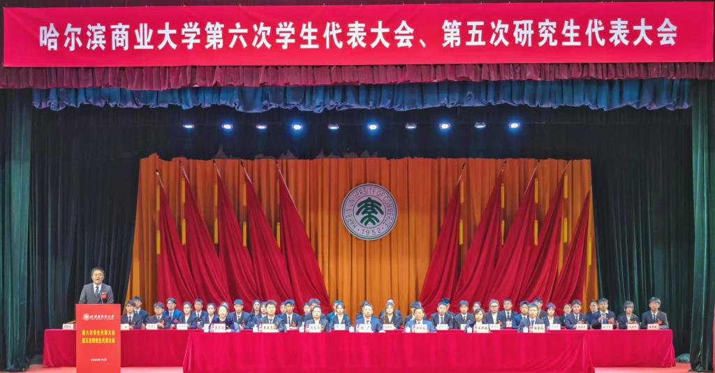 10月20日上午,哈尔滨商业大学第六次学生代表大会、第五次研究生代表大会顺利召开。校党委书记赵广,党委副书记田成义,研究生学院院长赵春雨、学生工作部部长任婵媛、学生处处长杜会永、校团委书记焦晋鹏,省学联驻会主席崔延昌,以及各学院党委书记、副书记,各学院团委书记、副书记出席开幕式。全校240名本科生代表、68名研究生代表参会。省内外32所兄弟高校发来贺信。
