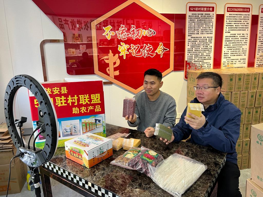 为持续巩固拓展脱贫攻坚成果,助力乡村振兴发展,驻村工作队积极探索“党建+订单农业+消费帮扶”新模式,通过党建引领发展“庭院经济+订单农业”种植,带动村级集体经济增收,让农民既“种得好”,又“卖得好”,实现增产增收良性循环,有效促进农民增收致富,助推乡村振兴。驻村工作队坚持带领全村发展“短视频+直播带货”农村电商新模式,积极参加各类展会直播活动。通过线上直播等方式,围绕依安县风土人情、供销系统、名优农产品等方面进行详细推介,并对“521+N驻村联盟”系列豆制品等10余种特色农产品进行重点宣介,累计线上销售助农产品20余万元。