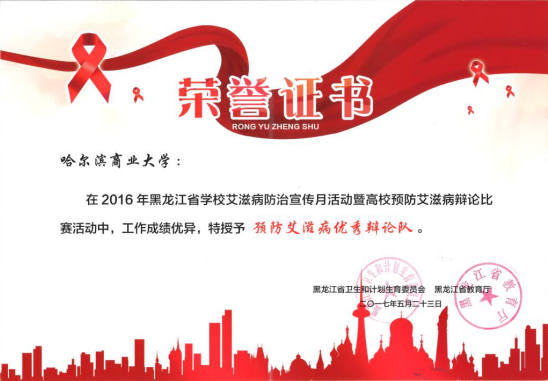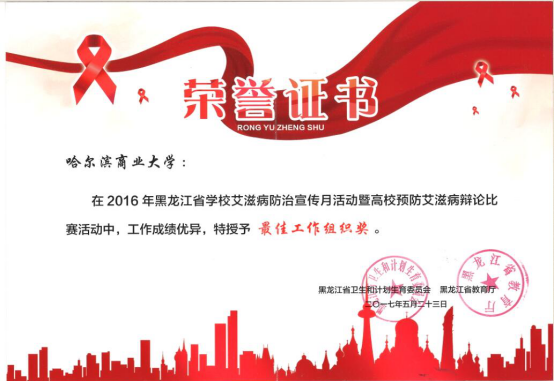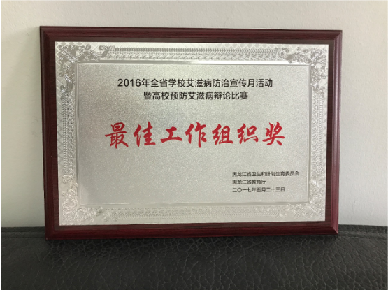 近日,黑龙江省卫生和计划生育委员会与省教育厅联合举办了2016年高校预防艾滋病辩论赛总结和表彰会,我校喜获2016年度艾滋病防治最佳工作组织奖和预防艾滋病优秀辩论队。