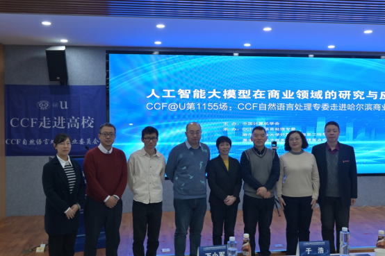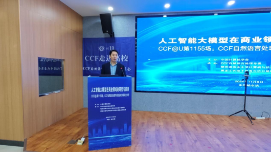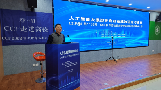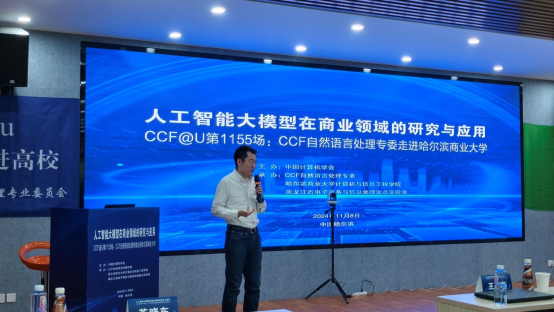 11月8日,由中国计算机学会(CCF)主办,CCF自然语言处理专委会、哈尔滨商业大学计算机与信息工程学院、黑龙江省电子商务与信息处理重点实验室承办的“CCF走进高校”活动在我校举行。会议就“人工智能大模型在商业领域的研究与应用”进行讨论。我校党委常委、副校长李景义教授,中国计算机学会自然语言处理专委会主任、复旦大学黄萱菁教授分别致辞。我校计算机与信息工程学院院长郑德权教授主持活动。计算机与信息工程学院教师、研究生代表共计100余人参加活动。