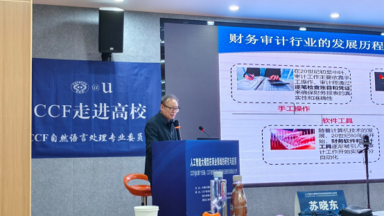 CCF自然语言处理专委会执委、哈尔滨工业大学赵铁军教授作了题为《财务审计领域大模型研发实践》的报告。赵铁军介绍了哈尔滨工业大学计算学部语言技术研究中心在财务审计领域大模型研发的进展,以及领域内的国内外研发现状,就存在问题和未来发展进行了讨论。