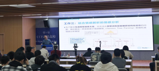 CCF自然语言处理专委会副秘书长、苏州大学计算机科学与技术学院王中卿副教授以《基于结构化预训练模型的商品评论情感分析》为题,介绍了基于结构化预训练模型的情感分析相关内容,指出通过在预训练模型的构建、训练、输出等层面结合情感元素关联的方式,可以实现高效和快速的情感信息抽取。