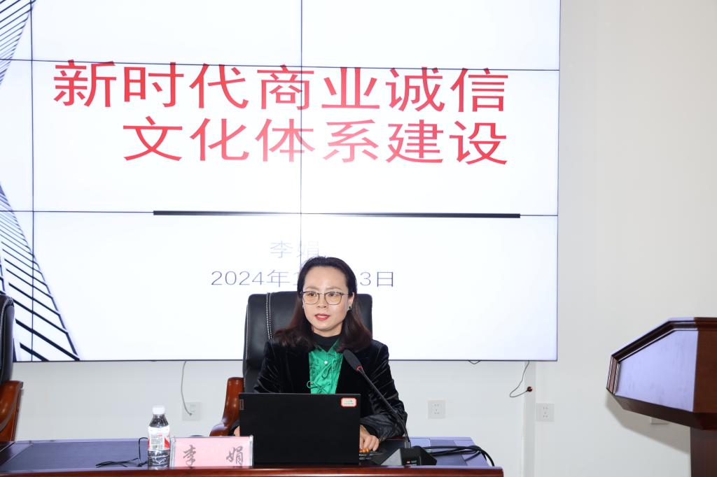 11月13日下午,我校“诚信讲堂”系列讲座之“新时代商业诚信文化体系建设”在南校区主楼408会议室举行。我校MBA(MPA)中心副主任李娟教授担任本期诚信讲堂主讲嘉宾。