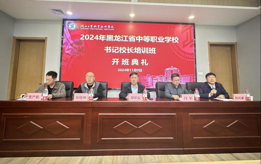 陕西工业职业技术学院继续教育与培训学院院长闫军、副院长贾严鹏出席黑龙江省中等职业学校校长书记高级研修班开班典礼。闫军代表陕西工业职业技术学院致辞,郑怀东对全体学员提出具体学习要求。