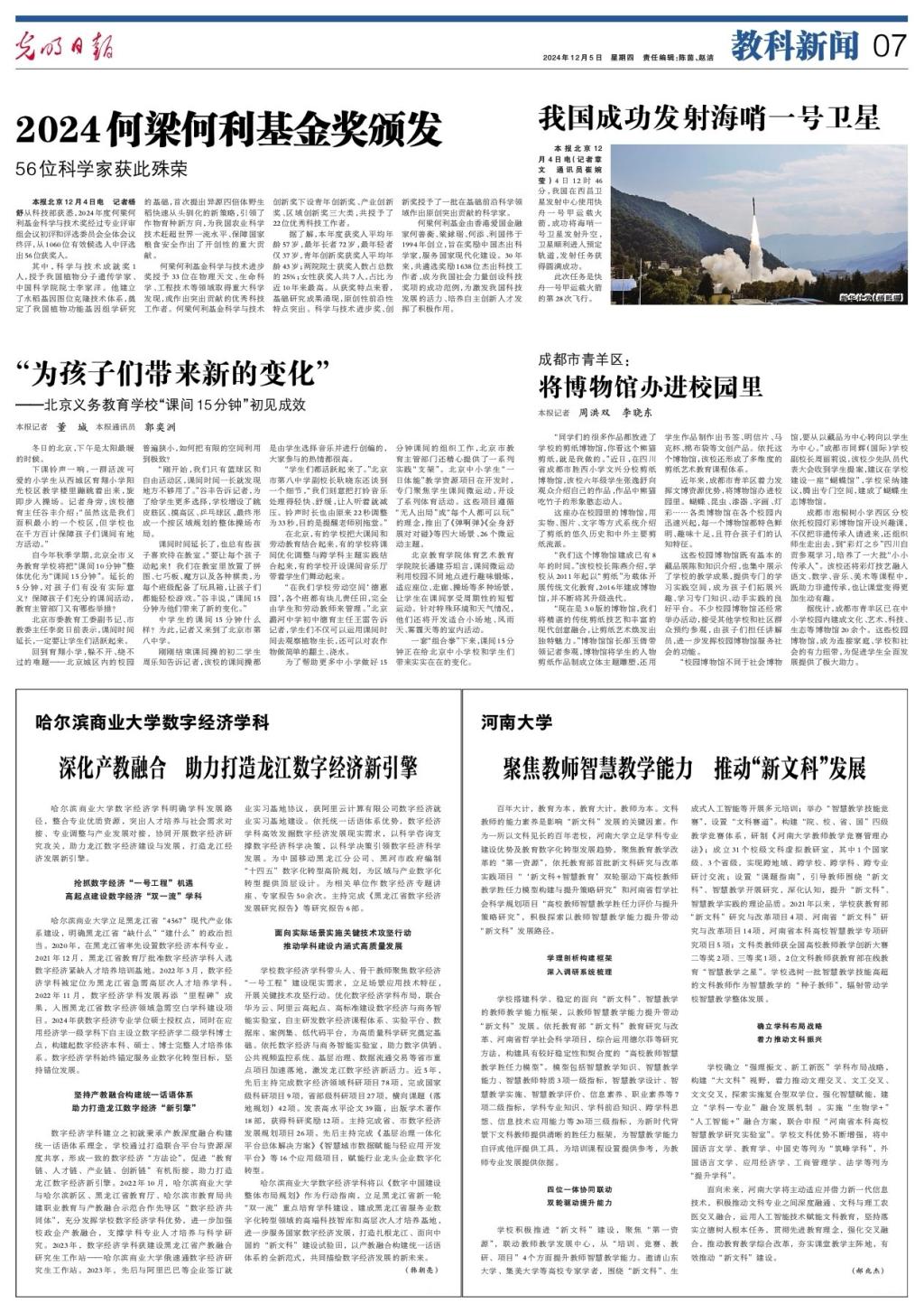 12月5日,《光明日报》“教科新闻”版以《哈尔滨商业大学数字经济学科:深化产教融合 助力打造龙江数字经济新引擎》为题,报道我校数字经济学科建设成效。