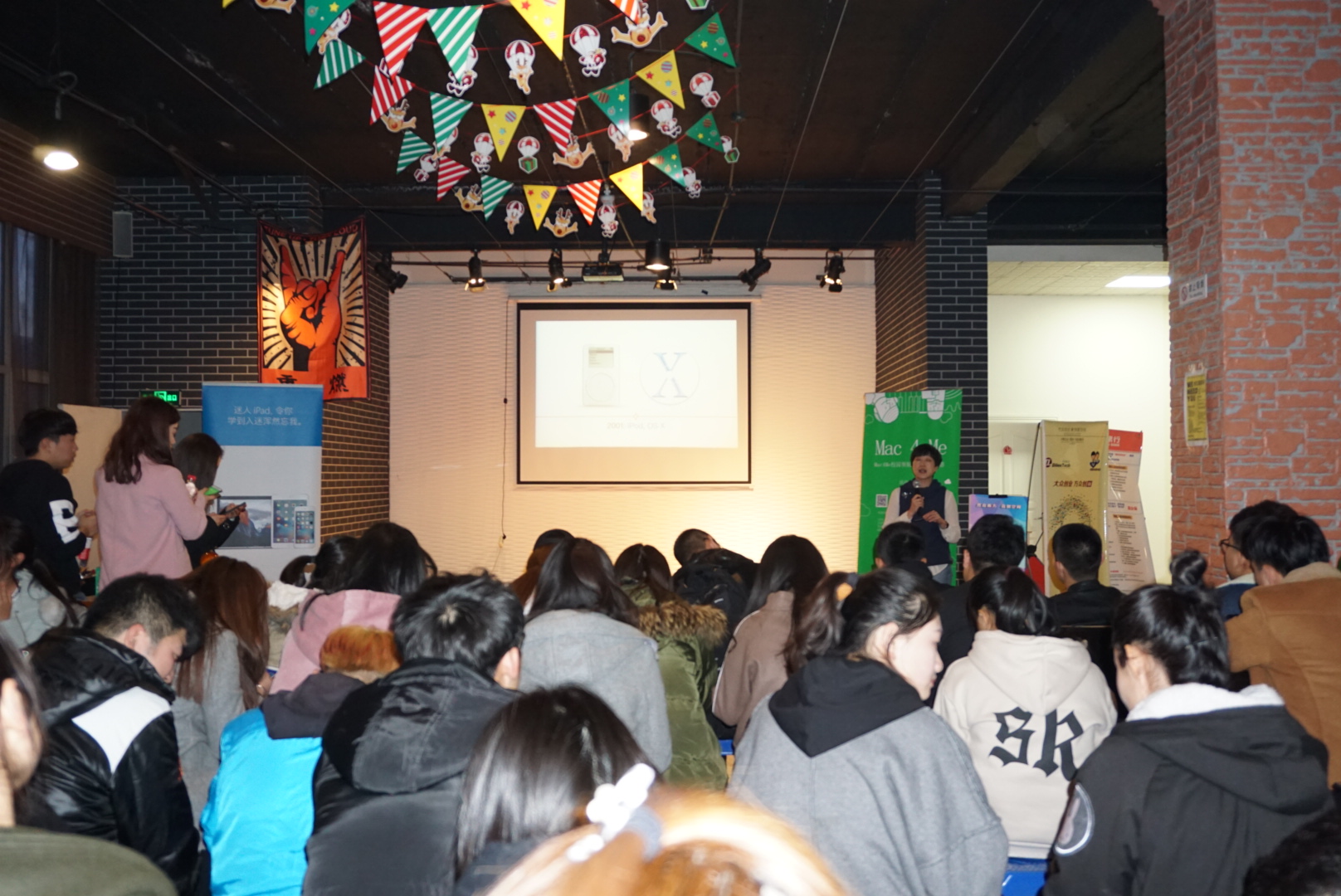 3月14日,苹果公司Mac4Me校园之行来到我校创新创业园区,面向我校大学生成功举办了《Apple制造wow响校园》的主题讲座,苹果高级讲师王晶阐述了苹果公司“将强大的科技转变成人们易于使用的工具”理念,分享了Apple文化历史,Apple最新科技介绍,ios移动应用开发,鼓励我校学生加入苹果的科技大家庭中,今后会在我校开设苹果招聘会,让更多的商大学子有机会进入苹果公司,圆我校学子的苹果梦。