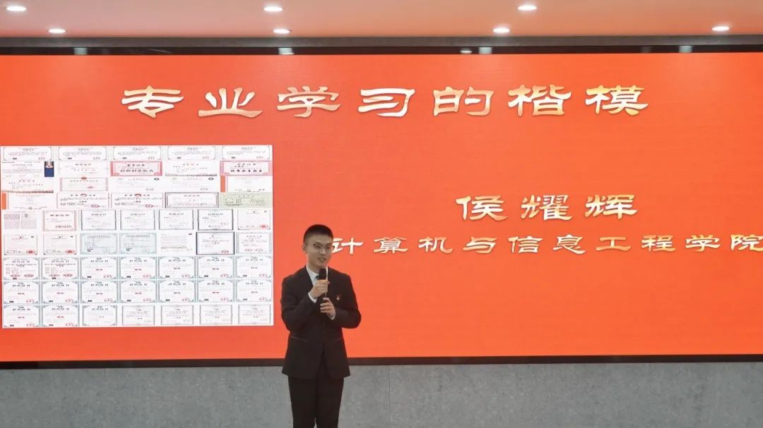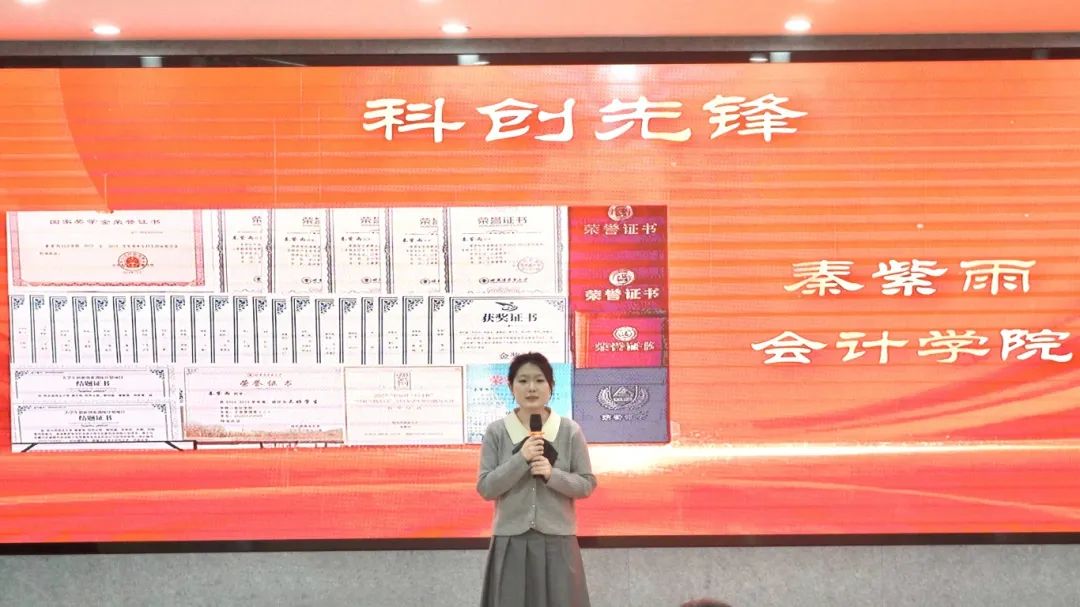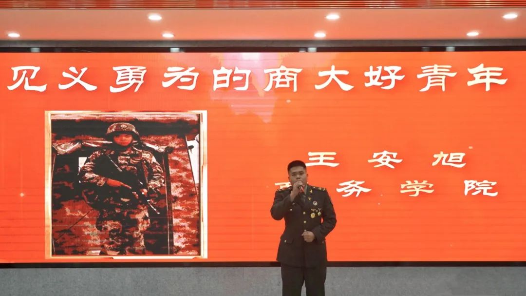 活动现场,与会师生通过一段段生动的视频,共同感受了获奖学生个人和集体展现出的青春风采:锐意进取的科创先锋秦紫雨、武凯慧、杨明慧;服务社会、奉献爱心的社会实践、志愿服务标兵李承泽、白笑妍、李晓宇、赵帅淇;潜心研思的专业学习楷模侯耀辉、陈楠楠、胡啸峰;砥砺前行的优秀学生骨干刘强强、刘明选、唐雪晴、张森焙;临危不惧、见义勇为的商大好青年王安旭。