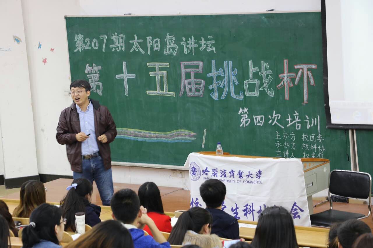 3月31日晚17:30,校团委邀请了东北农业大学工程学院力学教研室主任权龙哲教授在学校4107教室为我校“挑战杯”参赛学生进行指导培训。权老师是“全省高校优秀共产党员”,黑龙江省高校创新人才培养计划获得者,学生眼中热爱科学、品德高尚的良师益友,同事眼中的80后教学能手,同行眼中的科研新秀,具有丰富的挑战杯指导经验,2016年获全国挑战杯“优秀指导教师”的称号,其指导的作品,已获得各类大赛奖项76项;在第九届“挑战杯“全国大学生创业计划竞赛中,获国赛金奖,在第十四届“挑战杯”全国大学生课外学术科技作品竞赛中,获国赛二等奖和三等奖,所开展的大学生科技创新工作,已经成为东北农业大学第二课堂实践教学的一大特色。