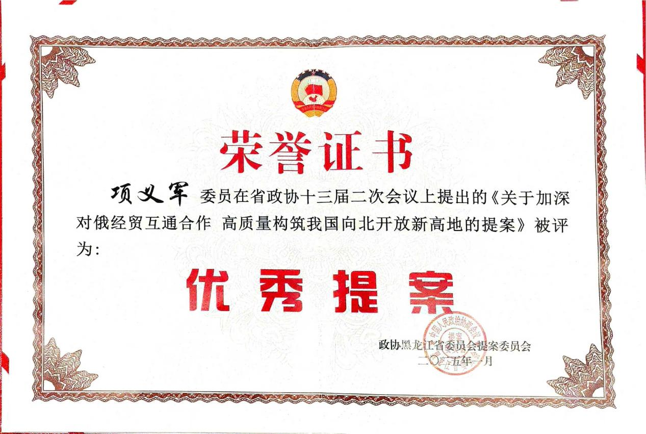省政协常委项义军围绕数字经济、中俄贸易等经济问题提交了《关于持续拓展我省数字贸易高质量发展的建议》《关于以龙粤深度合作赋能中俄贸易高质量发展的建议》《关于持续增强哈尔滨省会城市辐射力带动力影响力的对策建议》《关于促进我省冷链物流加快发展的提案》;省政协委员孙先民围绕“银发经济”提交了《关于加快布局我省银发经济产业园区培育新的经济增长点的建议》,并在工商联和教育界别联组会议上以《积极应对人口老龄化 加快进入银发经济新赛道》为题作交流发言;省政协委员张劲松围绕特色文旅和农业现代化等问题提交了《关于大力培养生物制造产业 加快构建现代化产业体系的建议》《关于以新质生产力赋能我省特色文化旅游发展的提案》《建设粮食主产县农业产业链现代化 助推县域经济高质量发展》《完善高校就业支持体系 助力龙江毕业生高质量充分就业》;省政协委员阎力君围绕中药产业和民生政策提交了《关于聚力推进珍稀濒危中药材产业化,赋能我省新质生产力的建议》《关于正确执行在职研究生双证与工龄挂钩民生政策的建议》;省政协委员李恩临围绕文旅体育产业发展和“银发经济”提交了《关于整合旅游资源优化冰雪大世界服务的建议》《关于黑龙江借助亚冬会开展体育IP文化活动的提案》《关于推动黑龙江省“银发经济”发展的提案》;省政协委员刘西涛围绕低空经济提交了《关于以低空经济助推我省新型城镇化建设的提案》。会议对黑龙江省政协2024年度优秀提案和优秀委员进行了表彰,项义军、孙先民、李恩临提交的《关于加深对俄经贸互通合作 高质量构筑我国向北开放新高地的提案》《关于大力发展“银发经济” 积极应对人口老龄化的提案》《关于加强养老产业人才队伍建设 破除社区居家养老产业发展瓶颈的提案》等3项提案被评为“优秀提案”,张劲松、刘西涛被评为2024年度“履职优秀委员”。