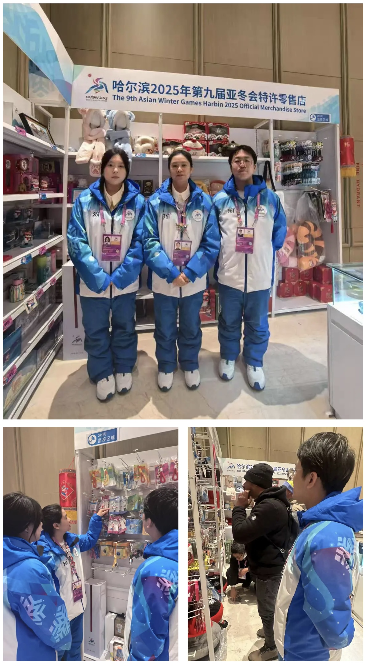 随着2025年哈尔滨第九届亚冬会的到来,华旗饭店运动员村也迎来了来自世界各地的冰雪健儿。作为整个赛事服务时间最长、接待人数最多的场馆之一,从1月27日开始,哈商大志愿者们便投入到特许商品销售和票务服务的各项工作中,为各国运动员、亚奥理事会官员等提供专业而温暖的服务。