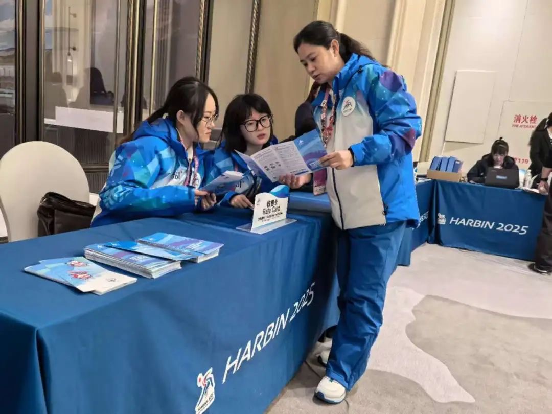 在票务服务区,哈商大的志愿者们耐心地为前来购票的运动员、官员们介绍赛事安排、购票流程,确保每位购票者都能顺利买到心仪场次的门票,享受亚冬会的精彩瞬间。同时,志愿者们还详细的解答关于场馆位置、观赛注意事项等问题,展现了高效、高质的专业素质和服务素养,彰显了中国青年蓬勃向上的青春风采。