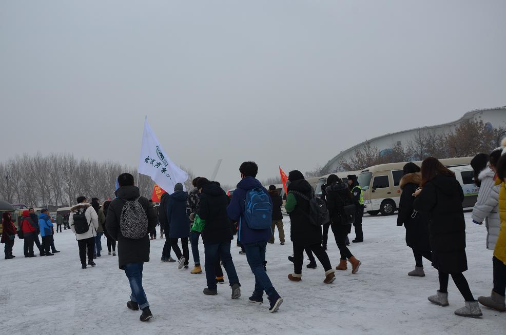 我校由体育学院副院长王洋和会计学院辅导员白璐两位老师带队,于九点到达太阳岛。启动仪式结束后,徒步行活动正式拉开帷幕。伴随着雪雕雪景,带着欢声笑语,壮阔的队伍从太阳石广场出发,一路浩浩荡荡,向着终点“水阁云天”景点前行。