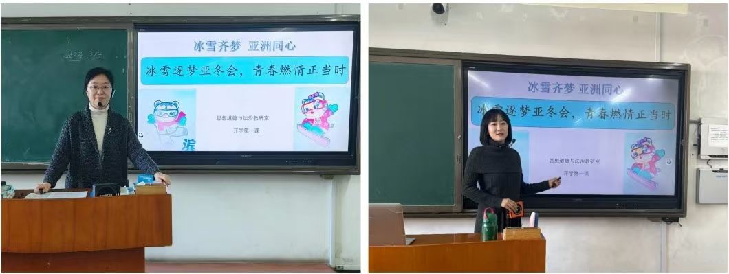 思想道德与法治课以“冰雪逐梦亚冬会,青春燃梦正当时”为主题,带领学生深入了解亚冬会的意义、背景以及它所承载的体育精神、创新精神、奉献精神,阐述亚冬会所象征的活力、激情与梦想,激励青年学生去追逐、去拼搏。