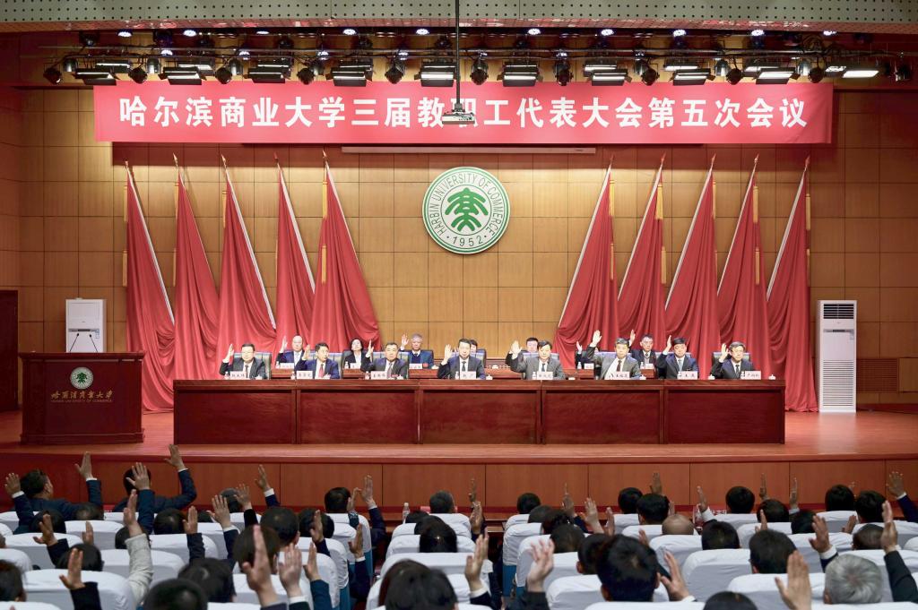 大会增补选举教代会执委会委员,审议通过关于《学校工作报告》的决议、关于《哈尔滨商业大学2024年度财务工作报告及2025年财务预算(草案)说明》的决议、关于《三届四次教代会提案处理情况和三届五次教代会提案征集情况报告》的决议。