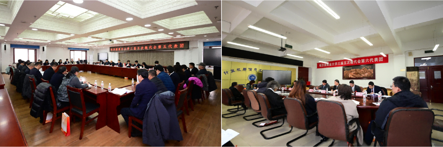 会议期间,与会代表分成六个代表团进行分组讨论。学校领导深入到代表团中,与代表们一起审议和讨论《学校工作报告》《哈尔滨商业大学2024年度财务工作报告及2025年财务预算情况(草案)说明》《三届四次教代会提案处理情况和三届五次教代会提案征集情况报告》,酝酿教代会执委会调整人选,共谋学校2025年高质量发展。赵广参加第一代表团分组讨论,在认真听取代表发言后,他指出,代表们认真履职尽责,积极建言献策,提出了许多富有建设性、针对性的意见和建议,表达了对学校事业发展的高度关注,体现了勇于攻坚克难、务求实效的使命担当,为学校创新发展和科学决策提供了重要参考与依据。