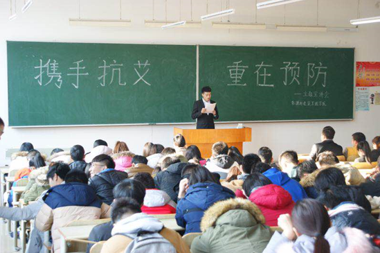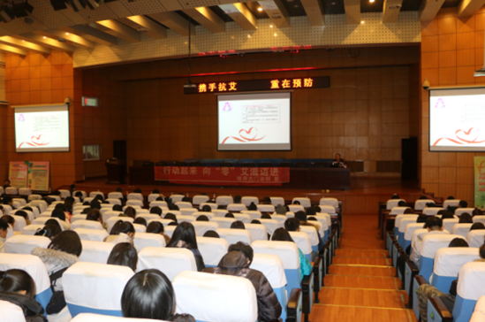 2016年11月23日,我校在国际报告厅举办预防艾滋病知识讲座。后勤管理处邀请哈尔滨市性病艾滋病防治协会秘书长、哈尔滨市疾病预防控制中心专家温迎春到我校主讲艾滋病防治知识。温迎春结合多年工作经验,用详实的统计数据、浅显易懂的语言,为到场学生讲解了艾滋病的传播途径、症状、防护措施等相关知识。学生积极参加互动,踊跃回答问题,现场气氛十分活跃。