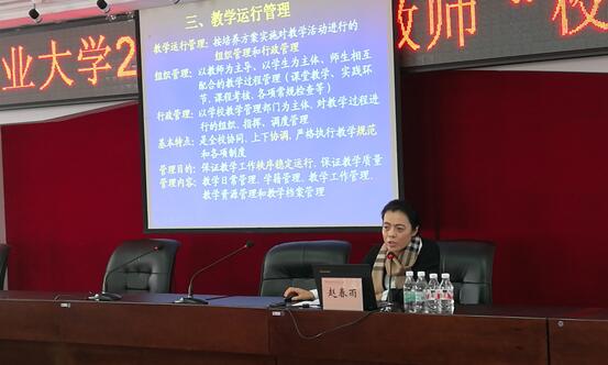 11月20日上午,赵春雨进行了题为本科教学管理制度规范的专题讲座。她对本科教学管理法规中的重点内容进行了系统的梳理,对教学计划和教学运行的要点等进行了详细的解读,并以“双语教师的晋级之路”作为案例,帮助青年教师进一步理解教学管理规范,明确学校教学管理工作要点,有助于青年教师尽快适应教学工作,加快专业成长。
