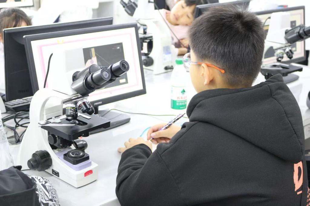 孩子们在实验报告上认真分析细胞结构,写下观察感悟:“原来每个细胞都有自己的分工”。 实验室还设置了问答环节及实验报告撰写环节,教师将专业特长充分转化为科普动能,让专业知识既有学术深度又富教育意义。
