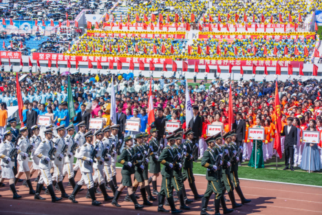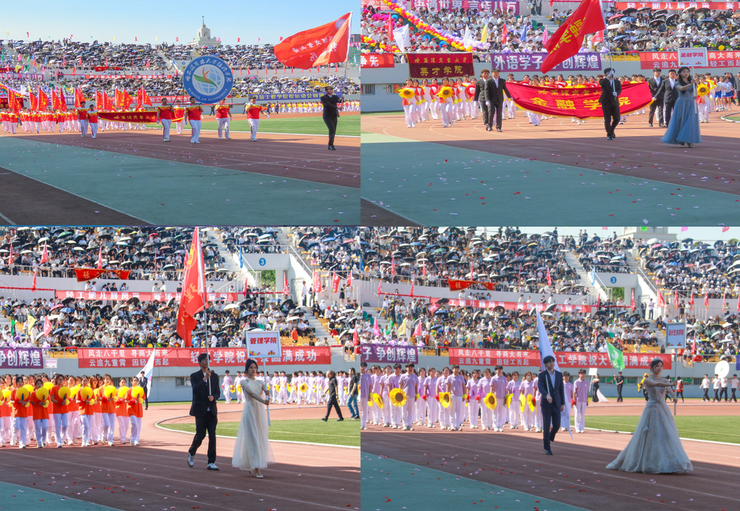 伴随着欢快的《运动员进行曲》,25支方队迈着矫健的步伐走过运动场,接受全校师生的检阅。在主席台前,各方队精神抖擞、口号嘹亮,通过精心设计的队列展示,将学科特色巧妙融入其中,尽显商大学子为学校高质量发展拼搏进取、矢志为强国建设挺膺担当的昂扬风貌。