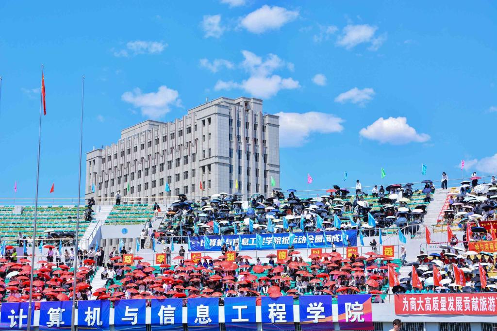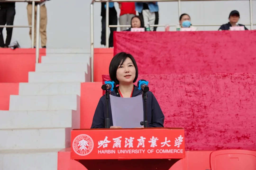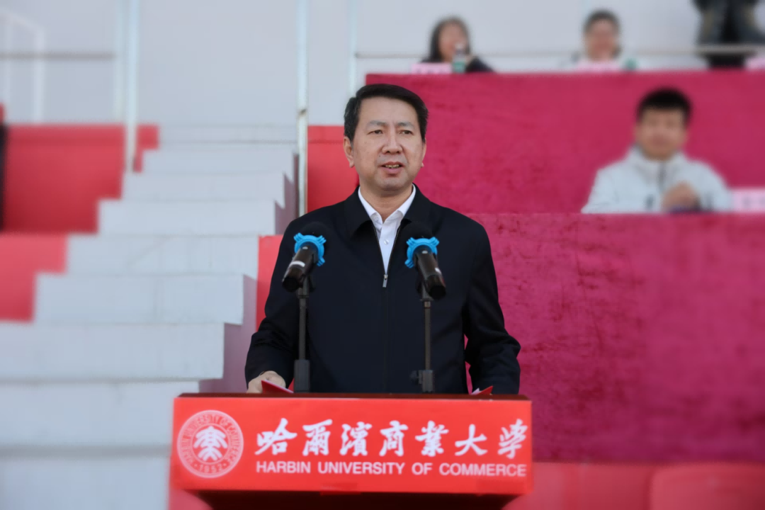 五月的商大校园,万物竞发、生机盎然。校园内一片欢腾,青春与自信齐飞,汗水与斗志并行。5月23日,哈尔滨商业大学在A区体育场举办第四十八届阳光体育运动会。在蓝天白云的映衬下,体育场上彩旗飘扬,鼓声阵阵,校党委书记赵广,校党委副书记田成义、姜国峰,党委常委、副校长李景义、赵大伟,党委常委、纪委书记、监察专员卢伯松与全校师生共同沉浸在这场充满活力与运动激情的体育盛会之中。开幕式进行了全程直播。