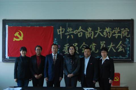 中共哈尔滨商业大学药学院委员会党员大会于2016年10月10日下午14:00在南区综合楼801会议室召开。会议差额选举产生了7位新一届党委委员,他们是(按姓氏笔画为序):王立(女)、古万军、刘琳(女)、李文兰(女)、杨波、殷莎莎(女)、潘俊峰。