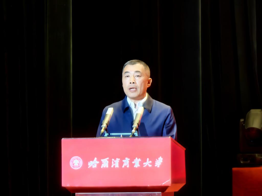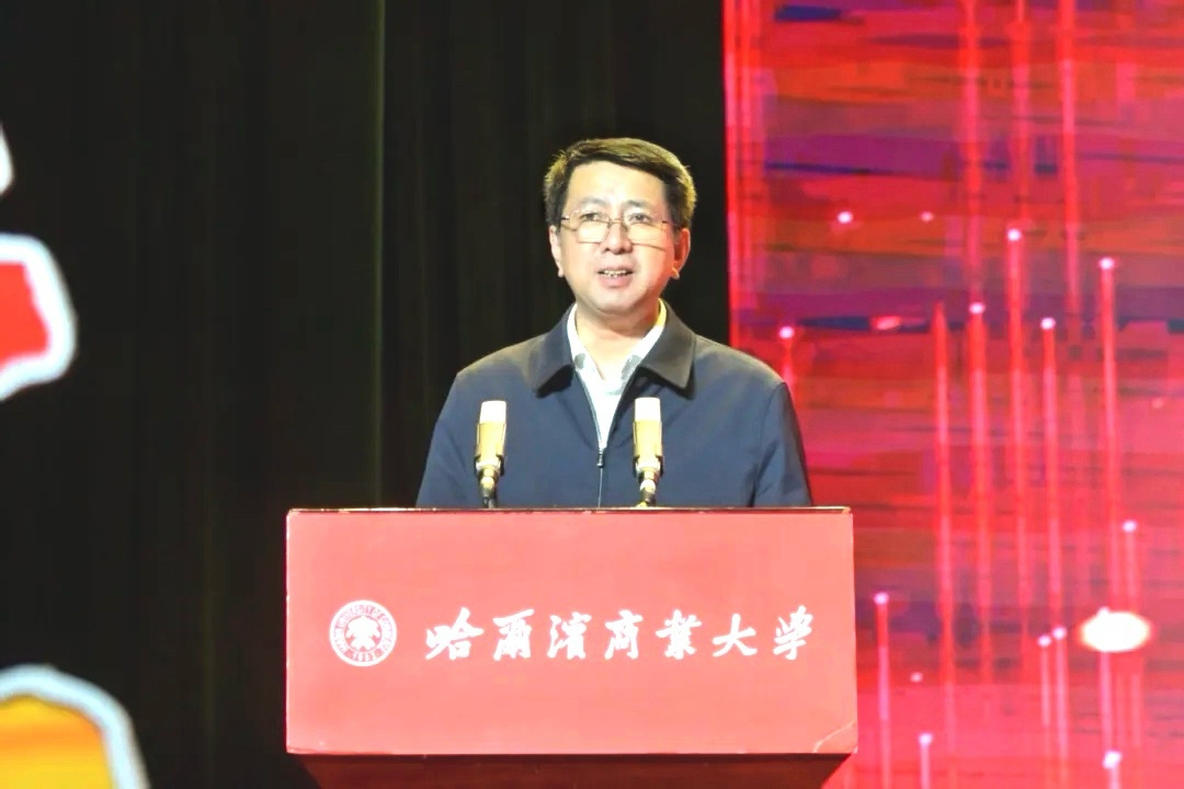赵广在讲话中指出,过去一年,广大青年学子奋楫争先、开拓进取,圆满完成了世界消防救援锦标赛、亚冬会志愿服务工作,在“挑战杯”竞赛、暑期“三下乡”社会实践、省第七届大学生艺术展演中获得优秀组织奖。校共青团获全省志愿服务“四个100”优秀贡献单位,展现了商大青年积极向上的时代风貌,诠释了新时代青年的责任与担当。他以四段意味深长的话语与全校青年师生共勉:要志存高远,坚定理想信念,做有志青年,把小我融入到祖国的大我之中,让理想信念在为祖国、为人民的奉献中升华;要明德守正,涵养高尚品格,做有德青年,自觉践行社会主义核心价值观,让清风正气、蓬勃朝气遍布商大校园、龙江沃土、祖国大地;要勤学苦练,锤炼过硬本领,做有才青年,在学习中增长知识、锤炼品格,在工作中增长才干、练就本领;要勇于担当,积极建功立业,做有为青年,保持初生牛犊不怕虎、越是艰险越向前的刚健勇毅,勇立时代潮头,争做时代先锋。