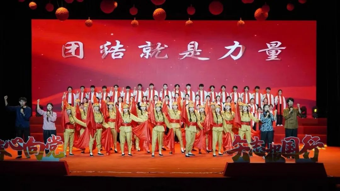 第二篇章中,校大学生艺术团的舞蹈《飞向春天》,以轻盈灵动的舞姿,展现了青春蓬勃向上的生命力,以及对祖国繁荣昌盛的美好祝福;能源与建筑工程学院的歌舞表演《新征程》,以激昂的旋律与铿锵的舞步,唱响新时代的奋进号角;管理学院团委书记韩雪、英才学院团委书记段莹、财政与公共管理学院团委书记魏丹与校大学生传媒中心的同学们带来的诗朗诵《无奋斗 不青春》,以饱含深情的语言,诉说青春与奋斗的誓言,字句铿锵,催人奋进;商务学院、外语学院联袂呈现歌伴舞《万疆》《如愿》,用悠扬歌声与翩跹舞姿礼赞山河壮丽、家国安康。