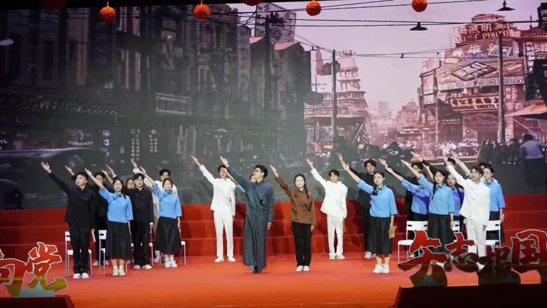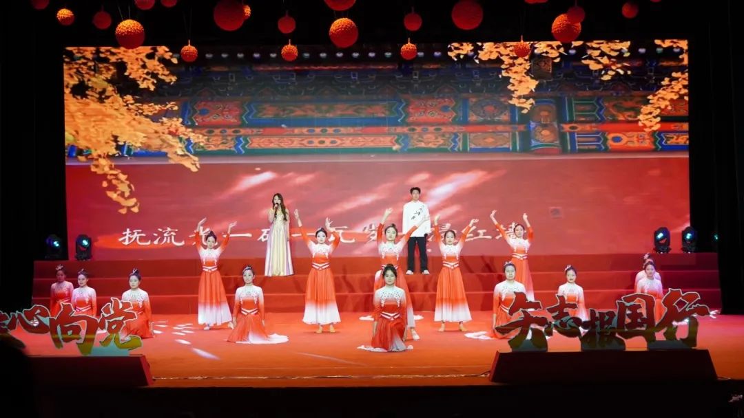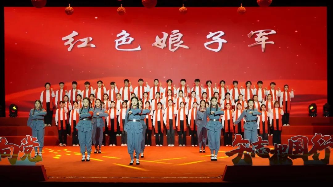第一篇章中,校大学生传媒中心的情景剧《致先辈》,回顾了激荡神州大地的五四爱国运动,展现了一代代青年人的家国情怀与历史担当;金融学院的舞蹈《红旗颂》,用优美的舞姿,生动地表达了对革命精神的崇高敬意;食品工程学院、药学院、校大学生艺术团、计算机与信息工程学院、法学院的红色歌曲联唱,用铿锵的旋律串联起亿万中华儿女为祖国献身、为幸福生活奋斗的历程;管理学院的情景剧《穿越时空的对话》,以虚实交织的手法,让当代青年与革命先烈对话,颂扬了青年志士视死如归、英勇无畏的革命精神。