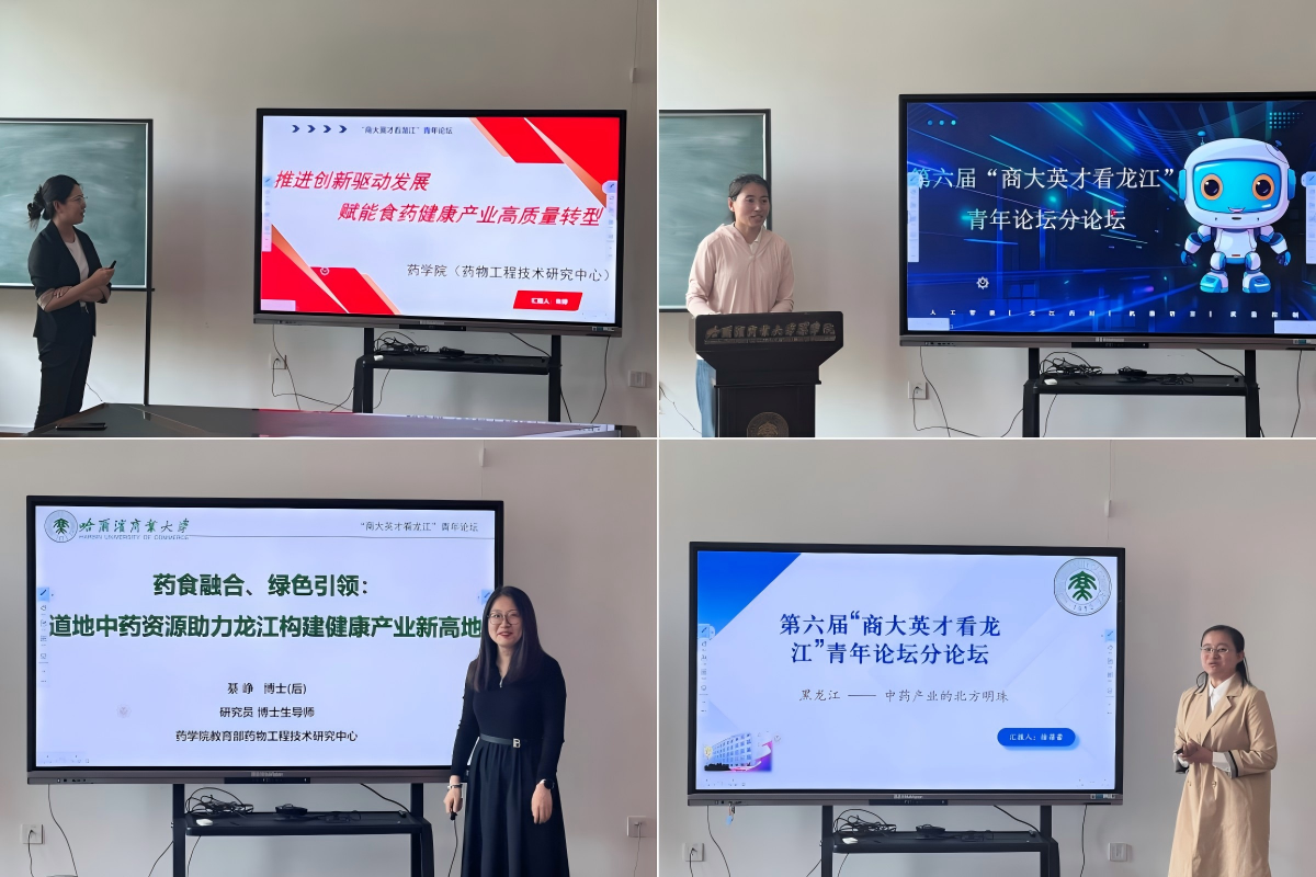 朱婷老师、赵丽珠老师、綦峥研究员、徐蓓蕾教授分别以《推进创新驱动发展赋能食药健康产业高质量转型》《人工智能感官技术的现状及在龙药质控中的应用展望》《药食融合、绿色引领:道地中药资源助力龙江构建健康产业新高地》《黑龙江——中药产业的北方明珠》为题作报告。各位青年教师立足专业领域,聚焦龙江药食资源发展实际,积极探索龙江高质量发展新路径;聚焦以科技创新引领新质生产力发展,推动中医药产业改造升级,为龙江发展建言献策。