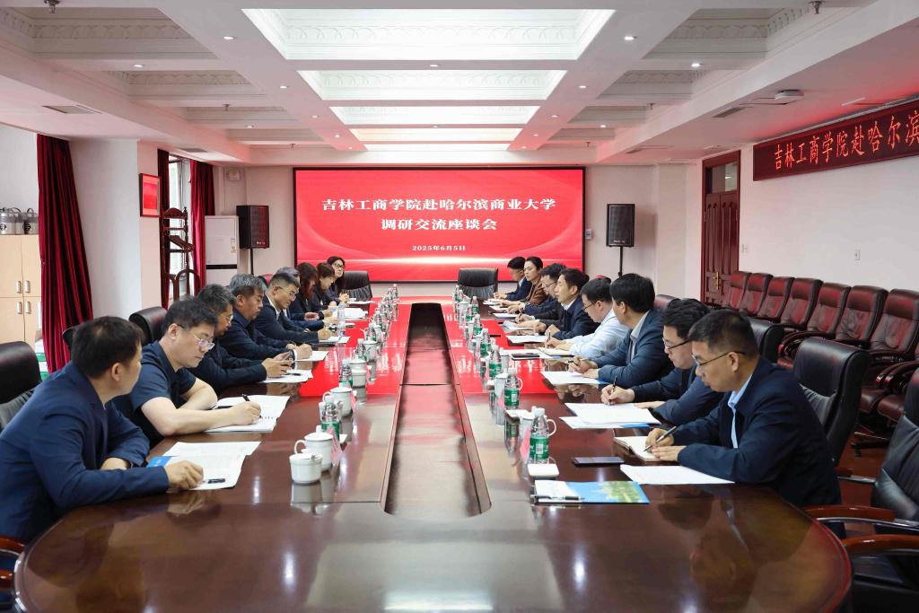 会上,李景义介绍哈尔滨商业大学办学历史、学科专业特色、办学成果成效等方面情况。李宝永对哈商大的办学特色与成效表示赞赏,并介绍吉林工商学院发展历程和当前情况。李宝永表示,此次调研交流旨在学习借鉴哈商大的先进经验和典型做法,加强两校在学科专业建设、人才培养、科学研究等方面的沟通交流,希望哈尔滨商业大学给予学校未来发展建设更多的支持与帮助,推动学校各项事业发展再上新台阶。李景义对李宝永校长对哈尔滨商业大学的高度评价表示感谢,表示吉林工商学院与哈尔滨商业大学在发展建设过程中存在诸多共同点,双方应互学互鉴,深化友谊,在更多领域、更深层次开展交流与合作,携手共赢结硕果,为服务地方经济社会发展和教育强国建设作出更大贡献。双方与会人员围绕学校顶层设计和实施,重点学科和重点学科群、一流学科、科研平台、学位点相关核心指标建设,高层次人才引进和培养,学术骨干和青年人才培养等方面展开深入交流探讨。