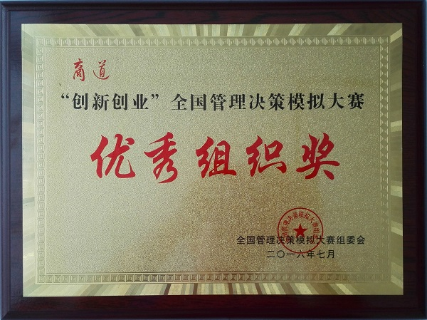 7月19至20日,由教育部高等学校工商管理类专业教学指导委员会指导、全国管理决策模拟大赛组委会主办的2016“创新创业杯”全国管理决策模拟大赛总决赛在内蒙古工业大学举行。我校由2013级会计专业的于盛林、2014工业工程专业的丛翔飞和国际会计专业的罗悦明组成的代表队获得全国总决赛特等奖,指导教师杨维芝获得优秀指导教师称号。为表彰我校多年来对此项赛事的精心组织和取得的优异成绩,大赛组委会授予我校“优秀组织奖”荣誉称号。