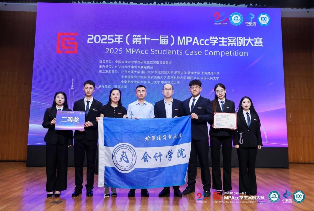 在3月至6月举办的第十一届全国MPAcc学生案例大赛中,由我校会计学院学生朱光泽、姜帆、尹澧、马琳琳、艾敬同组成的哈尔滨商业大学“会人一步队!”以黑马之姿首次跻身全国十强,最终斩获全国二等奖,刷新了黑龙江省高校在该赛事中的历史最佳成绩。