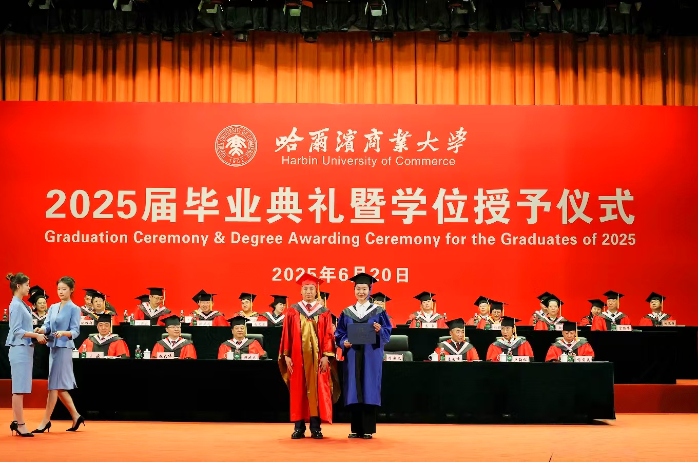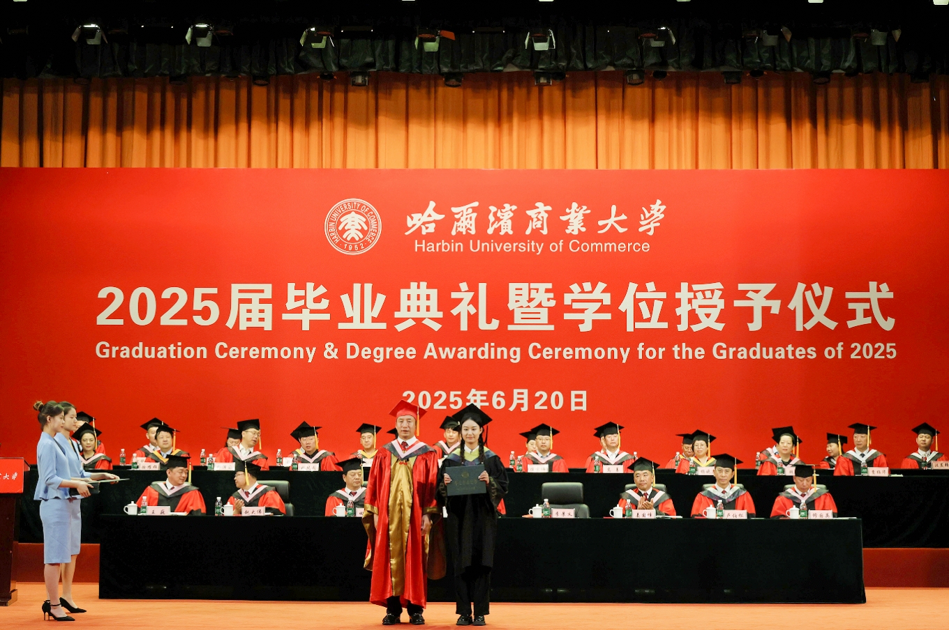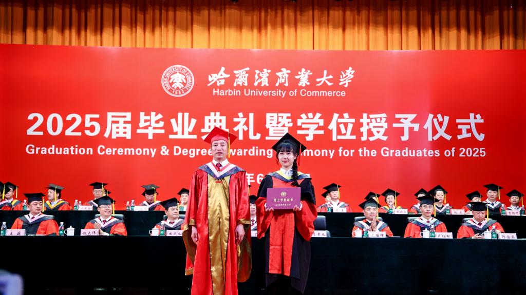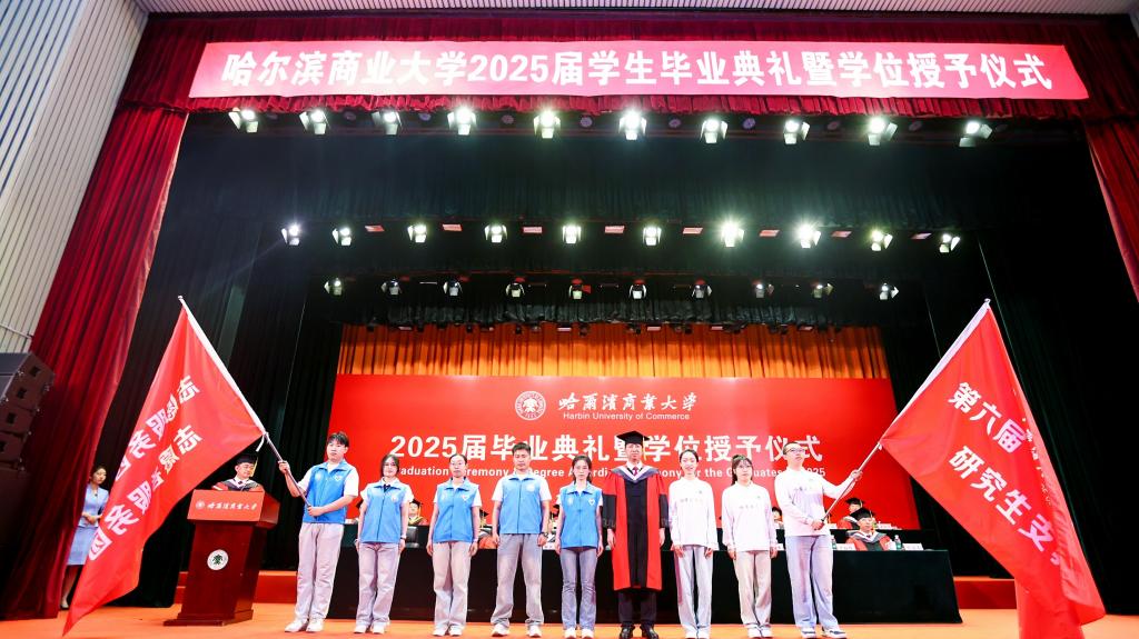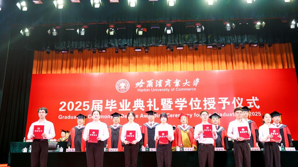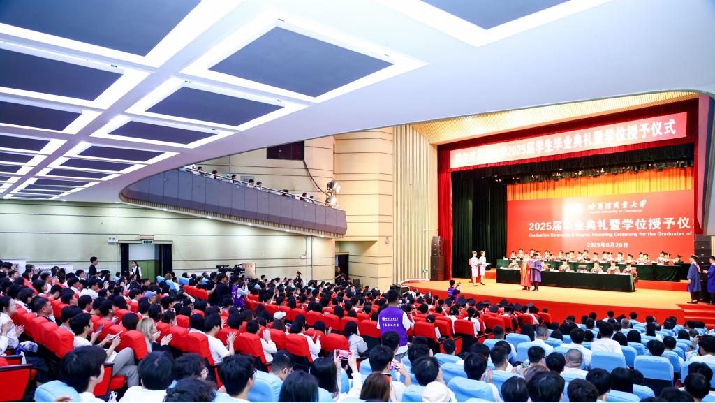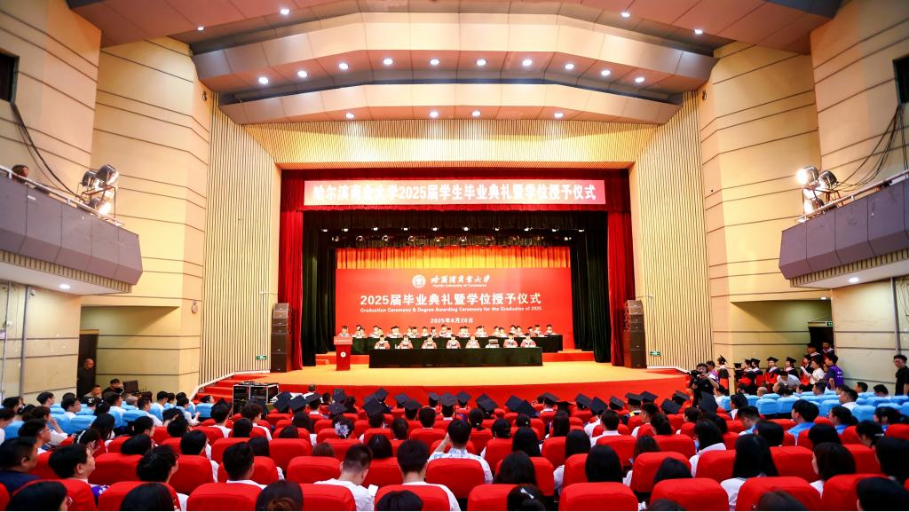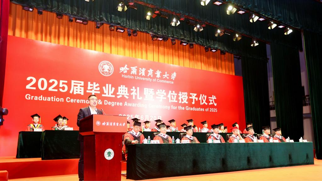 微风轻扬,夏花盛开,又是一季毕业情长,又是一次征帆再举。6月20日,哈尔滨商业大学2025届学生毕业典礼暨学位授予仪式在B区大礼堂隆重举行。在这个充满喜悦与感动的时刻,校园里弥漫着浓浓的温情与祝福,7112名毕业生圆满完成学业,即将踏上奋斗新征程,开启人生新篇章。校领导,校长助理,校学位评定委员会委员,各学院党委(党总支)书记、院长、副书记,党政管理及教辅部门负责人,毕业班辅导员,毕业生及在校生代表齐聚一堂,共同见证和庆祝2025届全体毕业生的难忘时刻。典礼还通过多个网络平台同步直播。