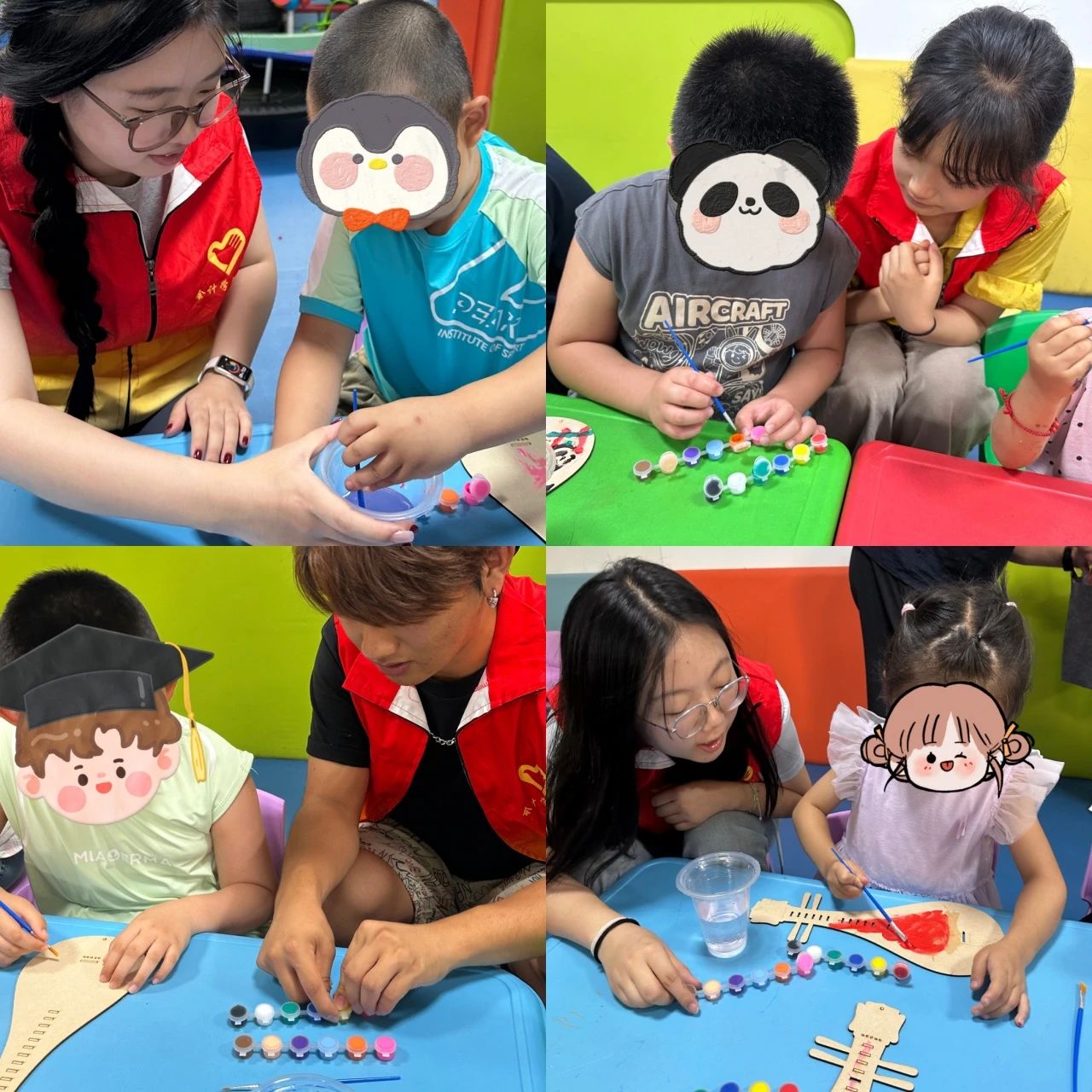 活动接近尾声时,那个起初总低着头的小男孩,突然把画好的“彩虹琵琶”塞进志愿者手里,没等对方反应过来,他的指尖轻轻碰了碰志愿者的手背,这无声的举动,胜过千言万语。当志愿者们整理场地时,调色盘上混出的新奇颜色、画板边缘沾着的小小手印,都成了这场心灵对话最珍贵的纪念。