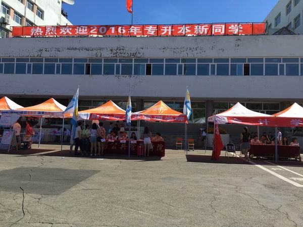 8月14日上午,我校2016年专升本迎新工作在南北校区同时展开。崭新的帐篷、醒目的条幅、鲜艳的旗帜和热情的志愿者烘托出热烈的迎新氛围。历年来,学校高度重视迎新工作。报到现场入学手续办理、专业问题解答、医疗保险服务等各项工作高效有序进行。