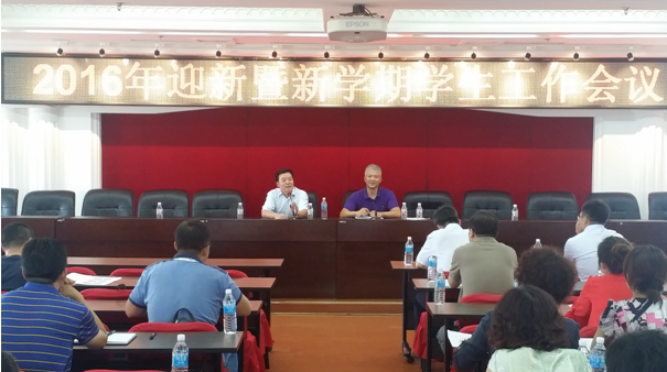 为做好2016级新生入学报到和新学期各项学生工作,我校于8月23日上午在A区行政中心612会议室召开了迎新暨新学期学生工作会议。参加会议的人员有校党委副书记杨殿军、迎新有关职能部门负责人、学生工作各职能部门全体工作人员、各学院党总支书记及副书记、处级辅导员、辅导员。校学生工作部部长白云龙主持会议。