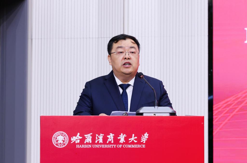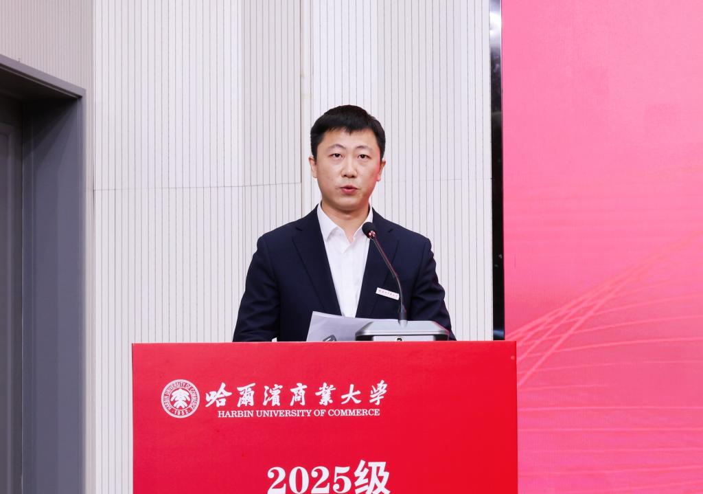 代碧波详细介绍了哈尔滨商业大学MBA、MPA教育的发展历程、办学特色与育人成果。他强调,中心依托学校优势学科,整合全校优质师资,构建“政产学研用”五位一体的培养模式,致力打造具有国际视野的企业家与政界精英的高端教育平台。他寄语新生要系统建构工商管理与公共管理知识体系,深耕专业领域,在笃学不怠中追求卓越,在躬耕实践中练就真本领,在协作奋进中勇攀高峰,以青春之歌奏响时代强音。