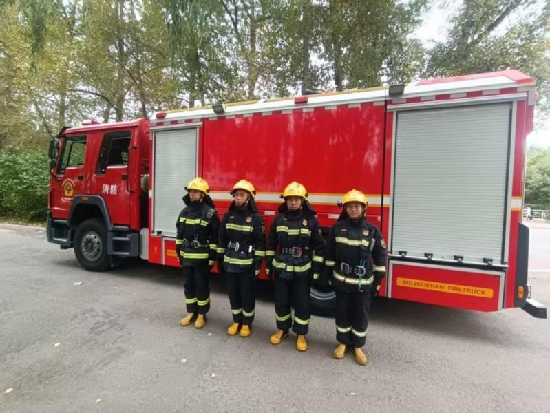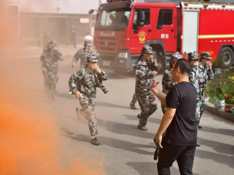 本次演练南北校区同步进行。演练现场紧张有序,随着警报声的响起,演练模拟各校区新生所在宿舍楼突发火灾,滚滚浓烟迅速蔓延,楼内人员被困。