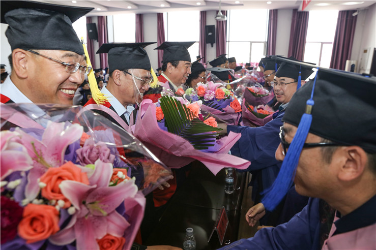 在毕业典礼接近尾声之时,毕业生代表、第十一届学生联合会主席游洋同学将象征着哈商大MBA、MPA精神的火炬传递给在校生代表、第十二届学生联合会主席毛迪同学,传承了坚忍不拔的意志、锐意进取的决心和团结互助的精神,同学们将肩负起商大人应有的责任,继续传承哈商大MBA、MPA人的精神,承接这份精神圣火。