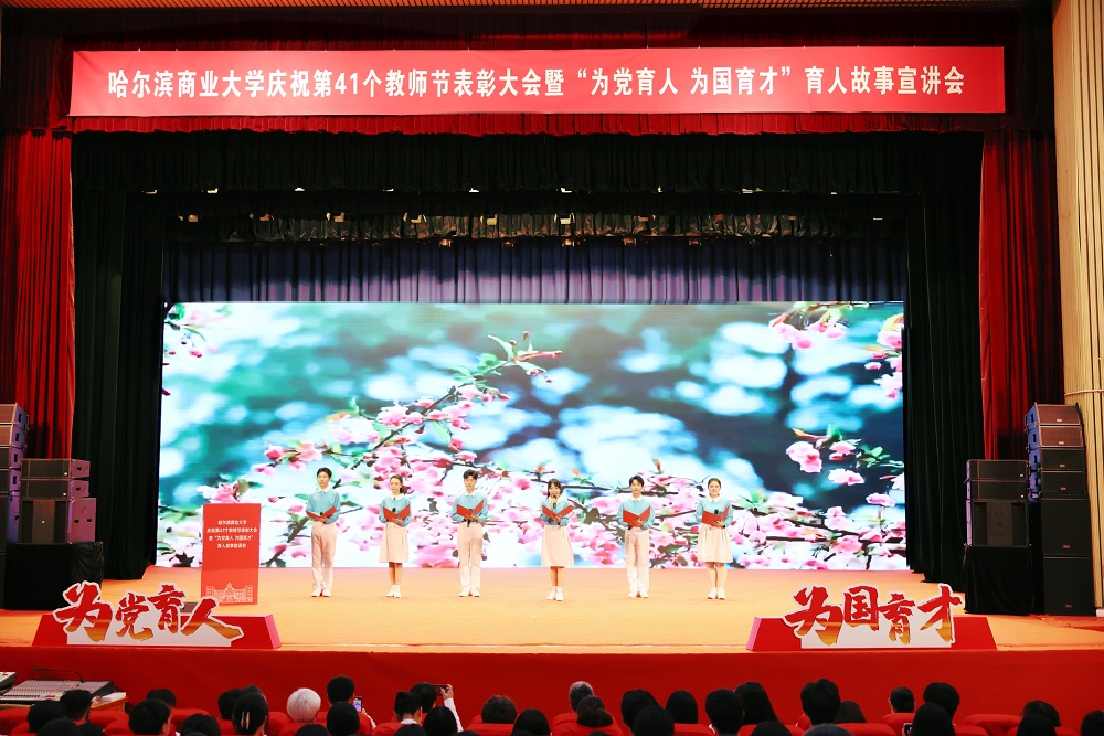9月10日,学校在B区礼堂召开庆祝第41个教师节表彰大会暨“为党育人 为国育才”育人故事宣讲会。全体校领导、校长助理出席大会;从教满35周年教职工、受表彰教职工,全体处级干部,教师和学生代表等参加大会。校党委副书记、工会主席田成义主持大会。
