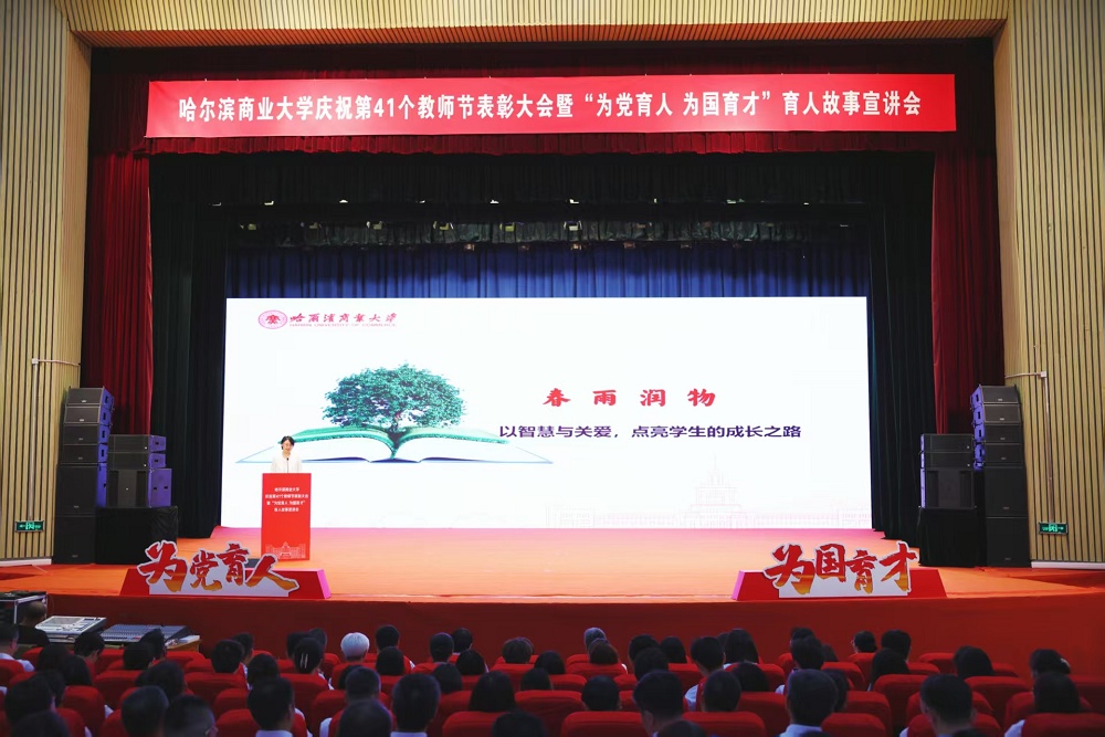 为持续推进教师思想政治和师德师风建设工作,以教育家精神铸魂强师,大会还进行了“为党育人 为国育才”育人故事宣讲。宣讲环节从教师工作部开展的“讲述我的育人故事”案例征集展示活动中邀请了四位讲述人现场宣讲。经济学院教师杨慧瀛、设计艺术学院教师朱冉、财政与公共管理学院教师魏丹、会计学院教师刘阳四位讲述人,分别以《讲台之上 星光之下》《春雨润心 静待花开》《那些关于光的答案 一名辅导员与她的“后来”》《会计教育的温暖与坚守》为题,分享他们育人旅程中的点滴瞬间,讲述他们在平凡岗位上不平凡的温暖故事。通过深情讲述他们躬耕教育战线多年的育人经历和感悟,深刻诠释教育家精神,激励全校广大教师守初心、担使命,为教育强国建设、民族复兴伟业作出新的更大贡献。
