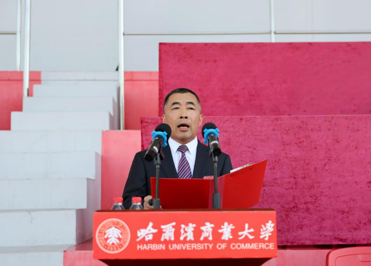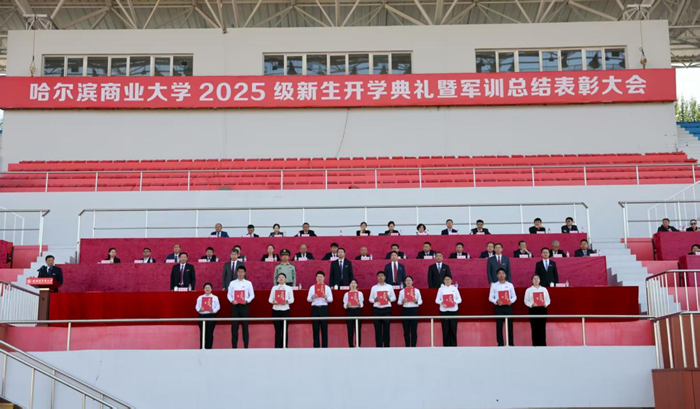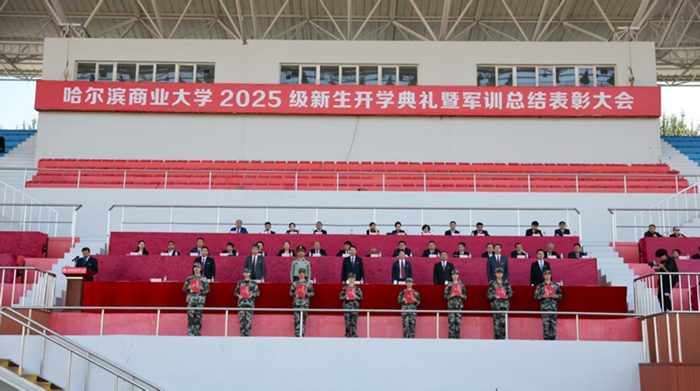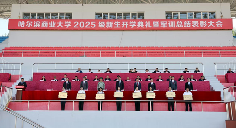 9月13日,哈尔滨商业大学在体育场召开2025级新生开学典礼暨军训总结表彰大会。我校党委书记赵广,党委副书记、校长李景义;中国人民解放军71375部队副政委孟令波;我校党委副书记、工会主席田成义,党委副书记姜国峰,党委常委、副校长王福友,党委常委、纪委书记卢伯松,党委常委、副校长修国英,校长助理欧忠辉出席大会。校直各单位党政负责人、各学院党委副书记、2025级新生辅导员及全体新生参加典礼。田成义主持典礼。