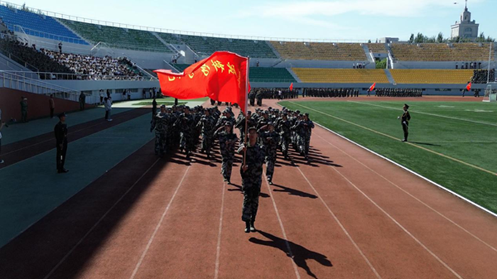 会上,2025级本科生进行了军训成果汇报表演。在分列式和特色科目展示中,同学们用挺拔的军姿、铿锵的步伐、嘹亮的口号展现了新时代哈商大学子昂扬向上的精神风貌。