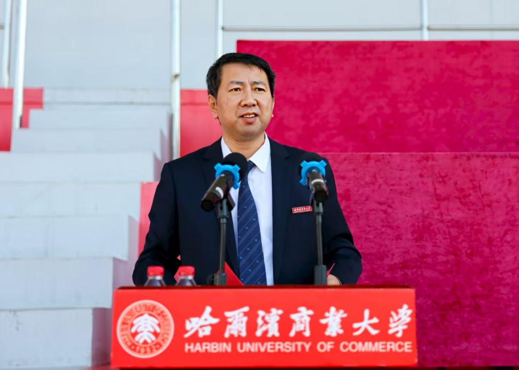 国家级高层次人才奖励计划特聘教授、食品工程学院院长、博士生导师张娜教授作为教师代表发言。她勉励同学们:要多去食堂“打卡”,在感受校园“烟火气”的同时,也和同学们共同接收大学生活的“温暖信号”,收获友谊;多在校园走一走,踏遍校园四季美景,感受多姿校园生活;多去尝试有趣的活动,积极参与,勇于探索,找到自己真正热爱的事情;多看书,充分利用好课余时间,养成良好的阅读习惯,让书籍成为成长的“充电宝”。要珍惜在哈商大的时光,去做有意义的事情,去做有意思的事情,发挥聪明才智和拼搏精神,努力提高自身硬实力,实现自身的成长与蜕变。哈尔滨商业大学全体教师愿意倾尽全力助力同学们成长成才,祝愿2025级的每一位同学都能在哈尔滨商业大学找到自己的热爱,成为闪闪发光的人。