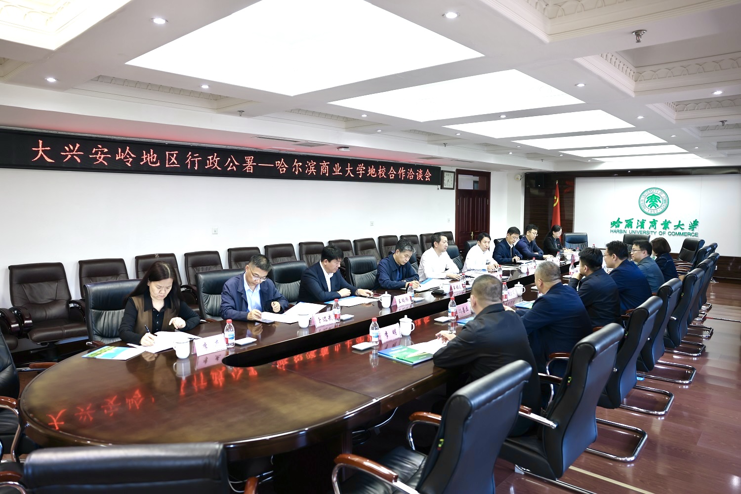9月18日,校党委书记赵广与党委副书记、校长李景义会见大兴安岭地区行政公署党组成员、副专员王跃然一行,洽谈校地合作事宜。大兴安岭地区行政公署——哈尔滨商业大学地校合作洽谈会在我校行政楼三楼会议室召开。我校党委常委、副校长王福友、寇胜利;大兴安岭职业学院党委书记敬海新,大兴安岭地区科技局副局长林光耀,大兴安岭职业学院党委委员、副校长冯喜立出席洽谈会。我校办公室、科研处、高教发展研究中心、旅游烹饪学院、教务处,大兴安岭职业学院教务处、学院项目办等相关单位负责人参加会议。赵广主持会议。