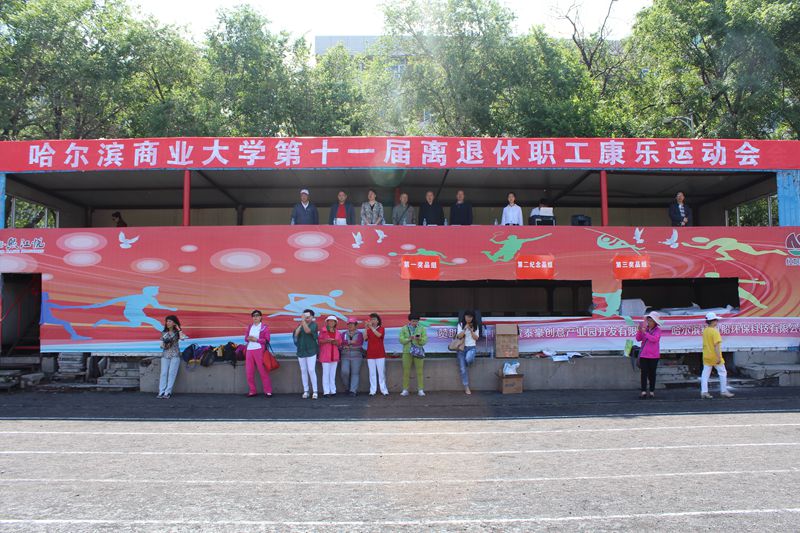 离退休老领导贾正轩、徐庆才、李乐银,校工会主席李晓梅、体育学院院长韩国纲、工会主席臧庆福、药学院党总支书记刘文军、轻工学院党总支书记张春明、离退休工作处处长冮旭光在主席台就座。李晓梅鼓励老同志们多多参加有益身心的文体活动,祝愿他们健康长寿并与老同志们一同参加趣味游艺活动。离退休艺术团、老年大学、太极协会在赛前进行了精彩的表演。