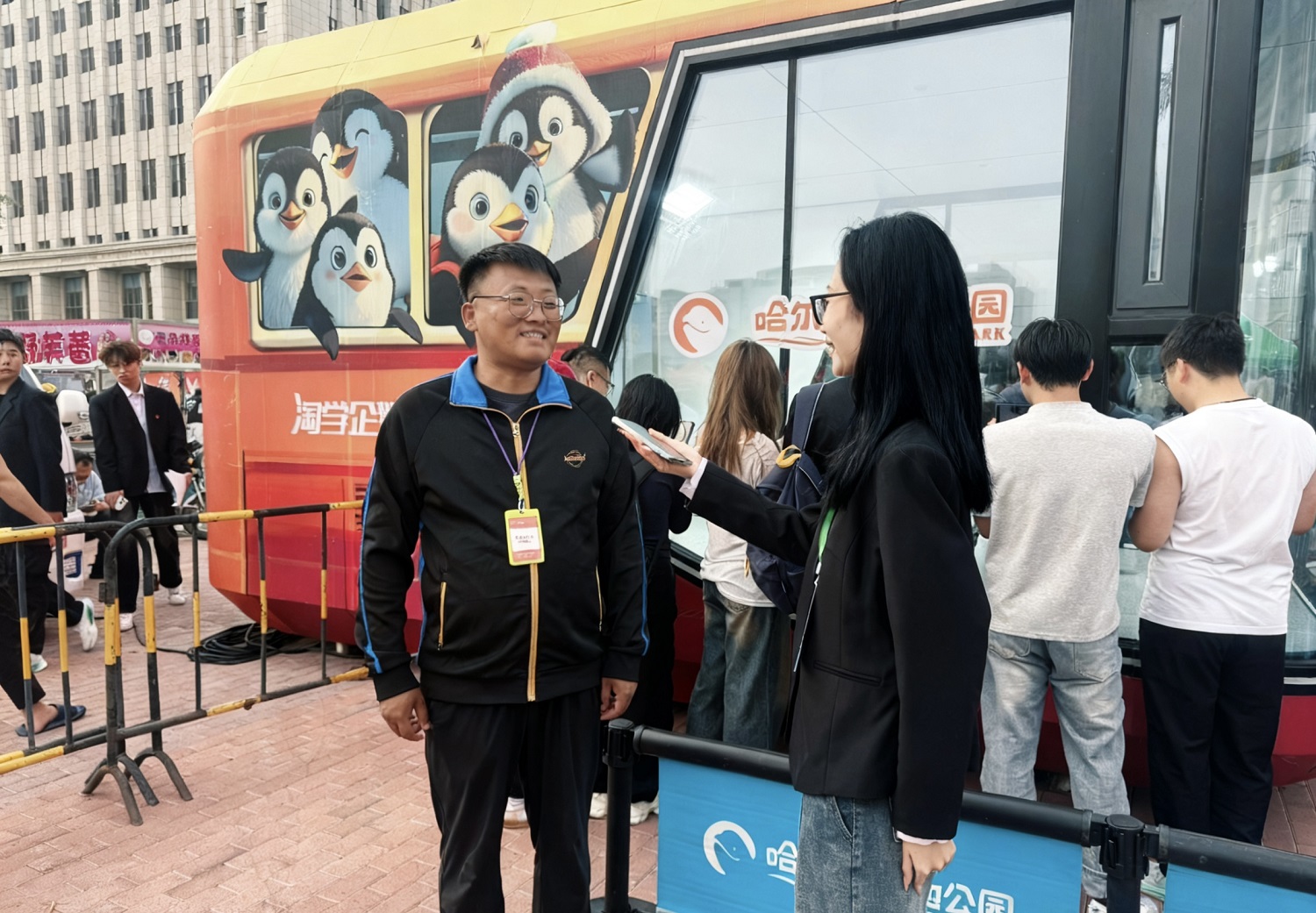 淘学企鹅高校巡游首站“落户”哈尔滨商业大学2025年商业文化校园嘉年华,为活动现场增添了别样的色彩。作为我省知名文旅地标的哈尔滨极地公园,将珍稀的南极巴布亚企鹅带入大学校园,创造了极地科普与校园活动深度融合的全新体验。哈尔滨极地公园生物部副经理陈会海介绍说:“为顺利完成本次巡游,极地公园与学校前期进行了大量的沟通交流,确定工作方案。为确保活动有序进行,极地公园派出专业团队,配备了具备制冷与环境控制系统的特制房车,并由兽医与饲养团队全程保障企鹅健康。”此次极具震撼力的“极地萌宠互动”,不仅为学生们带来了难忘的科普实践,更生动展现了龙江文旅企业以创新形式走近年轻群体、拓展市场边界的积极姿态,为提升区域文旅吸引力和青年认同感注入了鲜活能量。